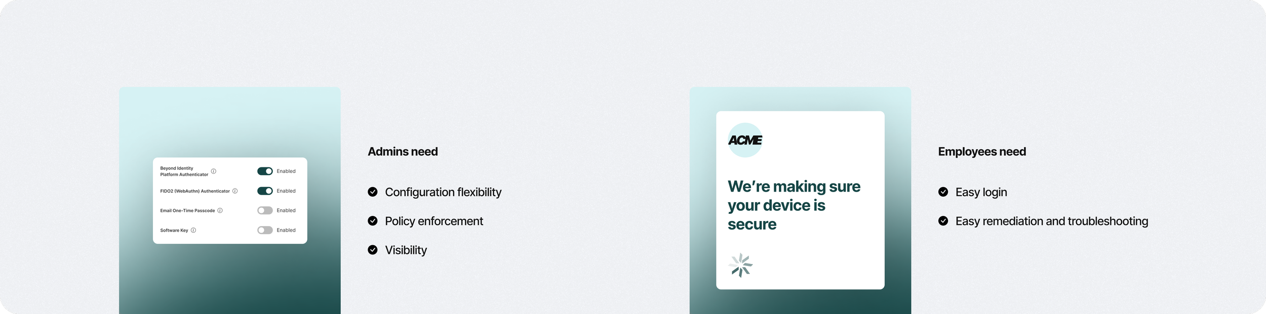 These companies couldn’t enforce a single way to authenticate across all employees, so they required configurability to accommodate different needs they had.