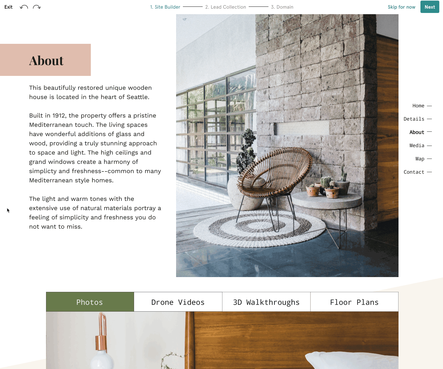 The main goal was to help agents quickly launching sites to increase home sales. Some key elements of the final builder design: