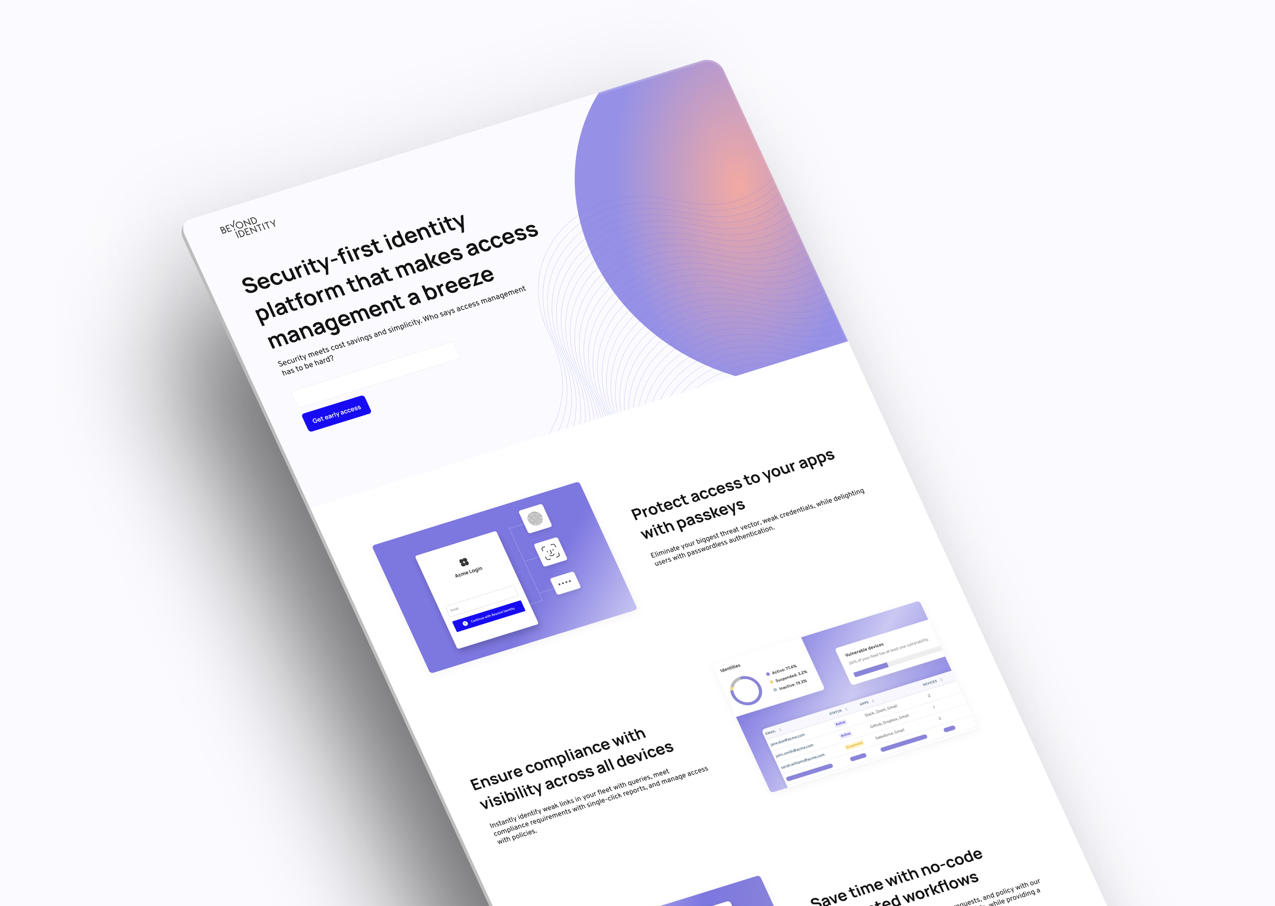 With this new initiative, I worked closely with product management to recruit and interview IT and security professionals to better understand what products they were using, what was working and wasn’t working, what it would take for them to switch. We conducted a landing page experiment to gain insight beyond their words - how willing were they to sign up for a security-focused identity platform? With our insights, we created a platform that balanced security with user experience, helped achieve compliance needs, and made migration easy.